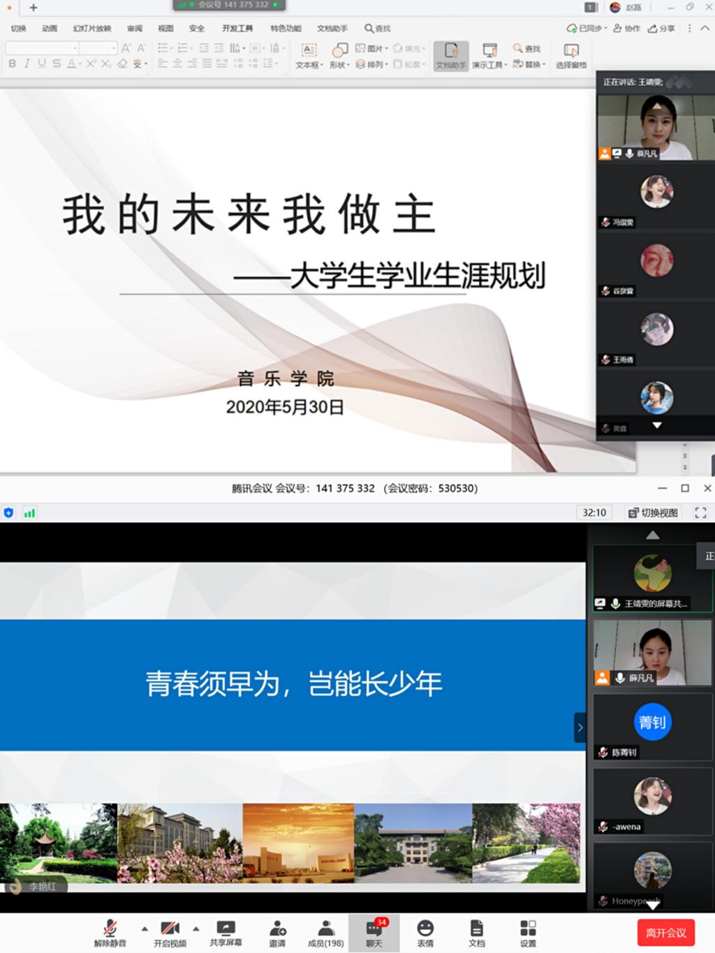 为进一步鼓励广大同学以科学的方法规划自己的大学学业和职业发展方向,思考并确定学业发展目标,培养自主学习意识,更好地推动云顶优良学风建设,2020年5月31晚7:00,云顶国际官网入口于腾讯会议开展学业生涯规划主题讲座,云顶研究生辅导员王靖雯受邀为2019级全体同学进行线上答题解惑,云顶国际官网入口党委副书记范玮熠、辅导员薛凡凡和2019级全体本科生参加了此次讲座,讲座由薛凡凡主持。